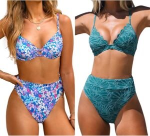 - Package Contents – 1pc Push Up Two Piece Swimsuit and 1 pc Scalloped V Neck Twist Two Piece Swimsuit. About Cup Style: With Soft Padded Cups.