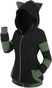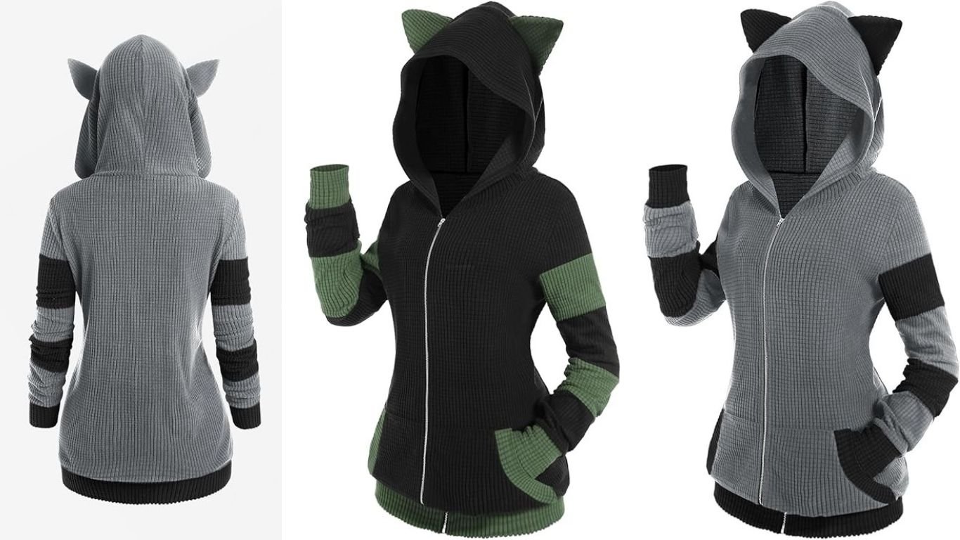 With its cat ear hood, ribbed texture, and flattering blouson silhouette, this hoodie proves that comfort and style can go hand in hand—especially when celebrating curves and personality.