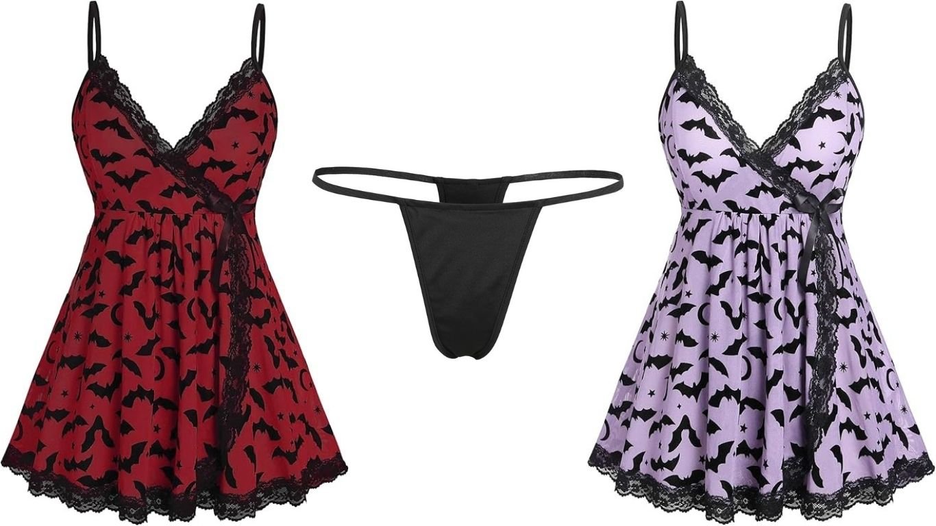 Make this Halloween unforgettable with the ROSE GAL Women’s Plus Size Bat Print Babydoll – a lingerie set that’s equal parts spooky and sexy.