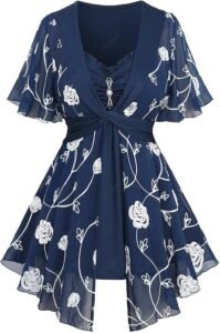 Step up your style game with the Rosegal Plus Size Women’s Embroidery Rose Flowers Chiffon Panel Twist Ruched 2-in-1 Blouse — a perfect combination of femininity, comfort, and chic design. Designed to flatter plus-size figures, this blouse brings elegance to everyday wear, whether you’re dressing for the office, brunch, or a casual evening out.