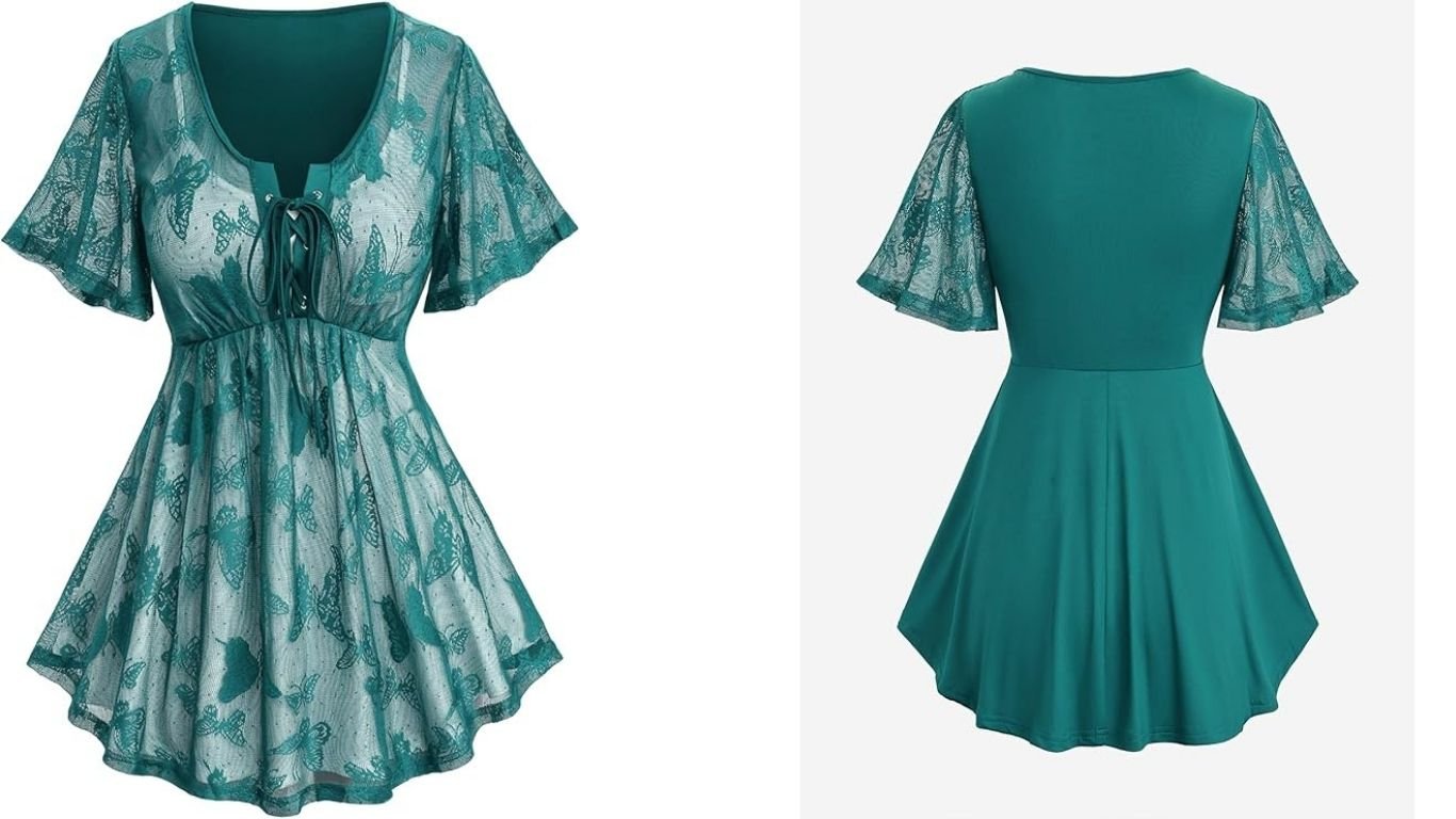 When fashion meets confidence, beauty follows effortlessly — and that’s exactly what the Rosegal Plus Size Women’s V-Neck Butterfly Lace Overlay Lace-Up 2-in-1 Blouse delivers. This stunning top is designed to celebrate curves, enhance comfort, and bring a touch of elegance to your everyday wardrobe. With its graceful lace details, flattering fit, and unique 2-in-1 layered design, it’s the perfect choice for women who love to look stylish while feeling free and comfortable.