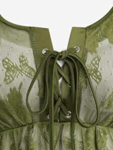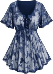 Rosegal Plus Size Women’s V-Neck Butterfly Lace Overlay Lace-Up 2-in-1 Blouse – A Flowy, Feminine Statement Piece for Every Occasion
