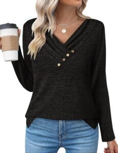 The Zeagoo Women’s Casual Tunic Tops Long Sleeve Shirts for Leggings redefine everyday comfort. With its soft feel, flattering fit, and chic buttoned V-neck design, it’s the perfect pullover for women who love simple yet stylish clothing.