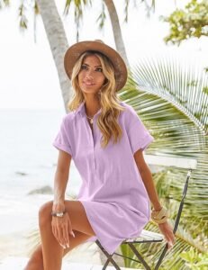 Stay cool, confident, and effortlessly chic this summer with the Zeagoo Women’s Cotton Shirt Dress. Perfect for warm days and sunny getaways, this short sleeve button-down dress offers the perfect blend of casual comfort and timeless elegance. Whether you’re heading to the beach, brunch, or a weekend stroll, this dress keeps you looking stylish and feeling relaxed all day long.